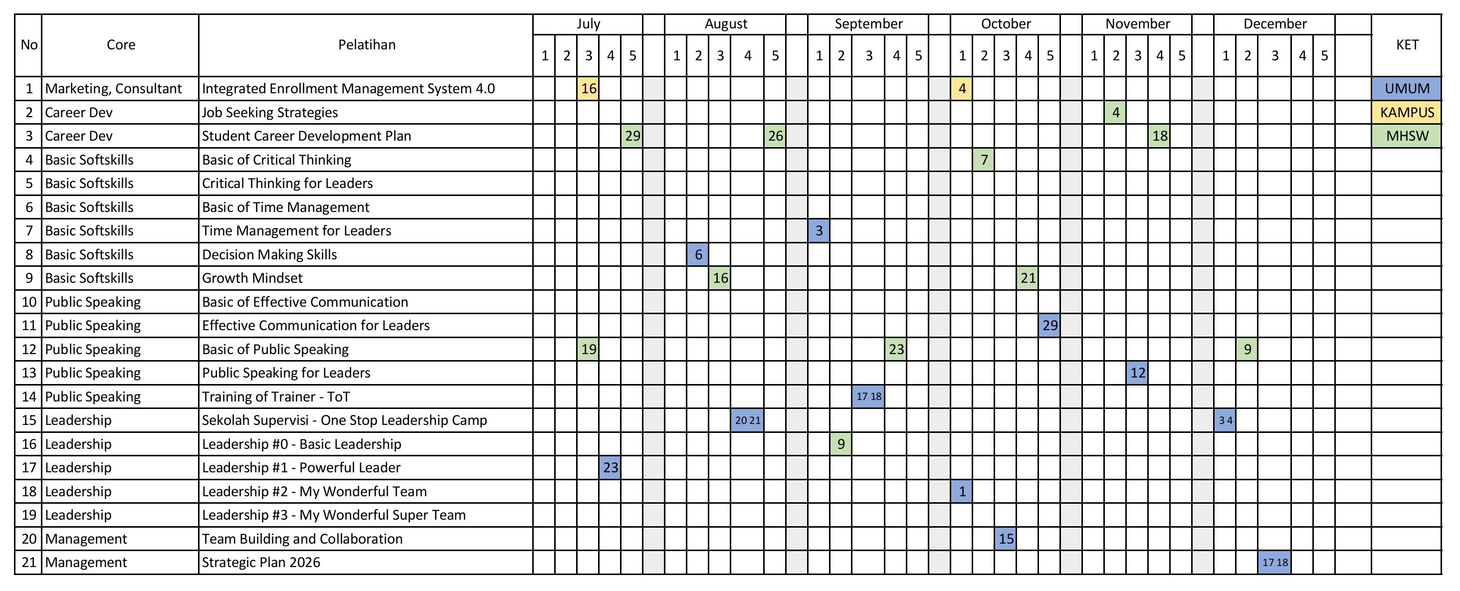 Jadwal Pelatihan – Training 2025 – II